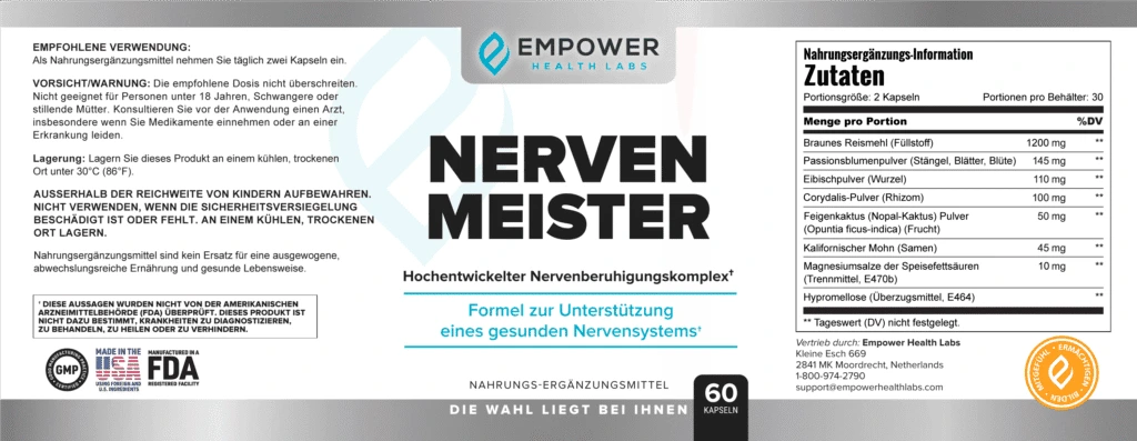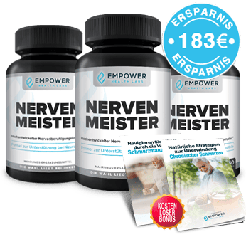 Genau hier setzt Nerven Meister an. Seine einzigartige Formel blockiert die Freisetzung von Enzymen, die die 7 Schmerz- und Entzündungswege aktivieren. Gleichzeitig unterstützt es die natürliche Regeneration der Nerven, damit sie sich erholen können.